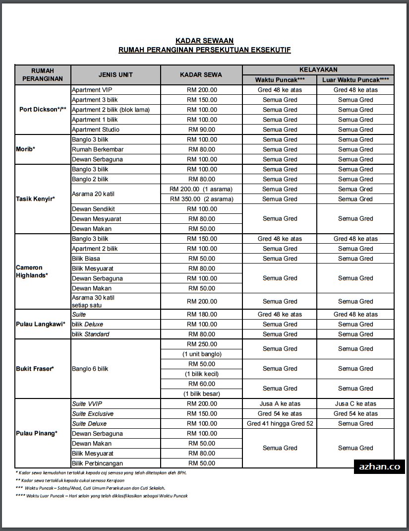 Kemudahan Rumah Peranginan Persekutuan Untuk Penjawat Awam Azhan Co